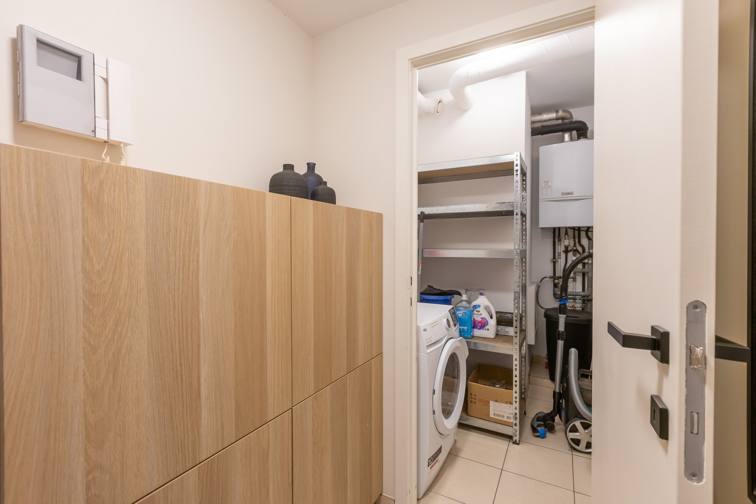 Die Wohnung verfügt außerdem über eine moderne offene Küche, Badezimmer mit Dusche, separates WC und einen praktischen Abstellraum mit Waschmaschine.