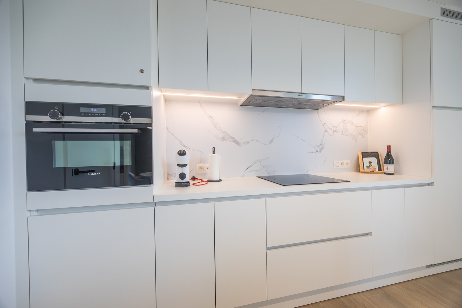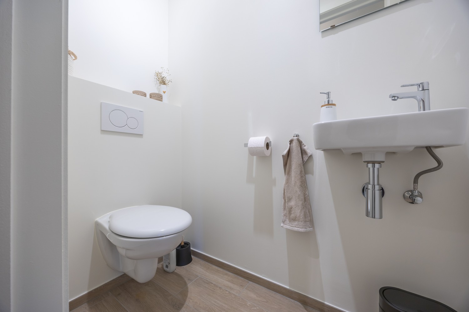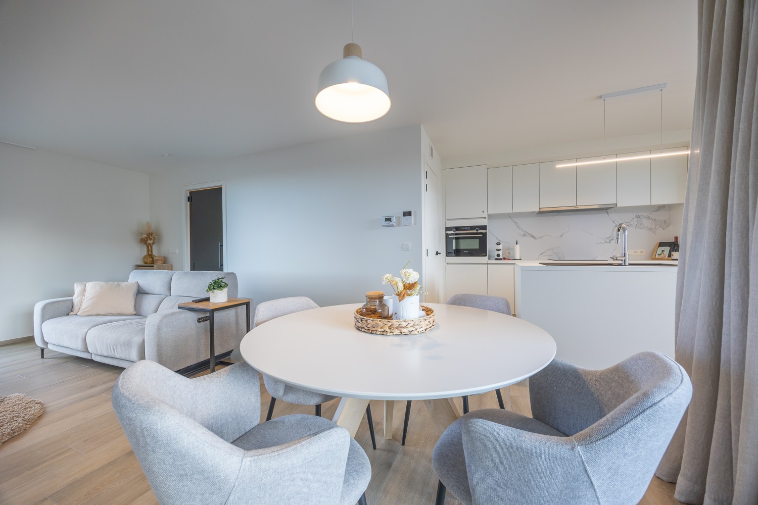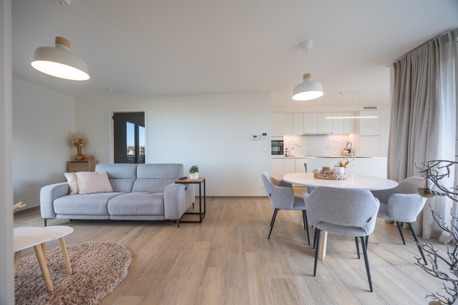 The stylish and light-filled living room is bathed in natural light thanks to the floor-to-ceiling windows and offers direct access to the cosy, sunny terrace. Enjoy a relaxed breakfast in the morning sun or a pleasant aperitif at sunset. The open, fully equipped kitchen blends seamlessly with the living area and invites you to cook and enjoy together. There is also a convenient storage room, a modern bathroom with spacious walk-in shower, and a separate toilet. The apartment is warm, modern and tastefully furnished, offering all contemporary comforts for a carefree stay.