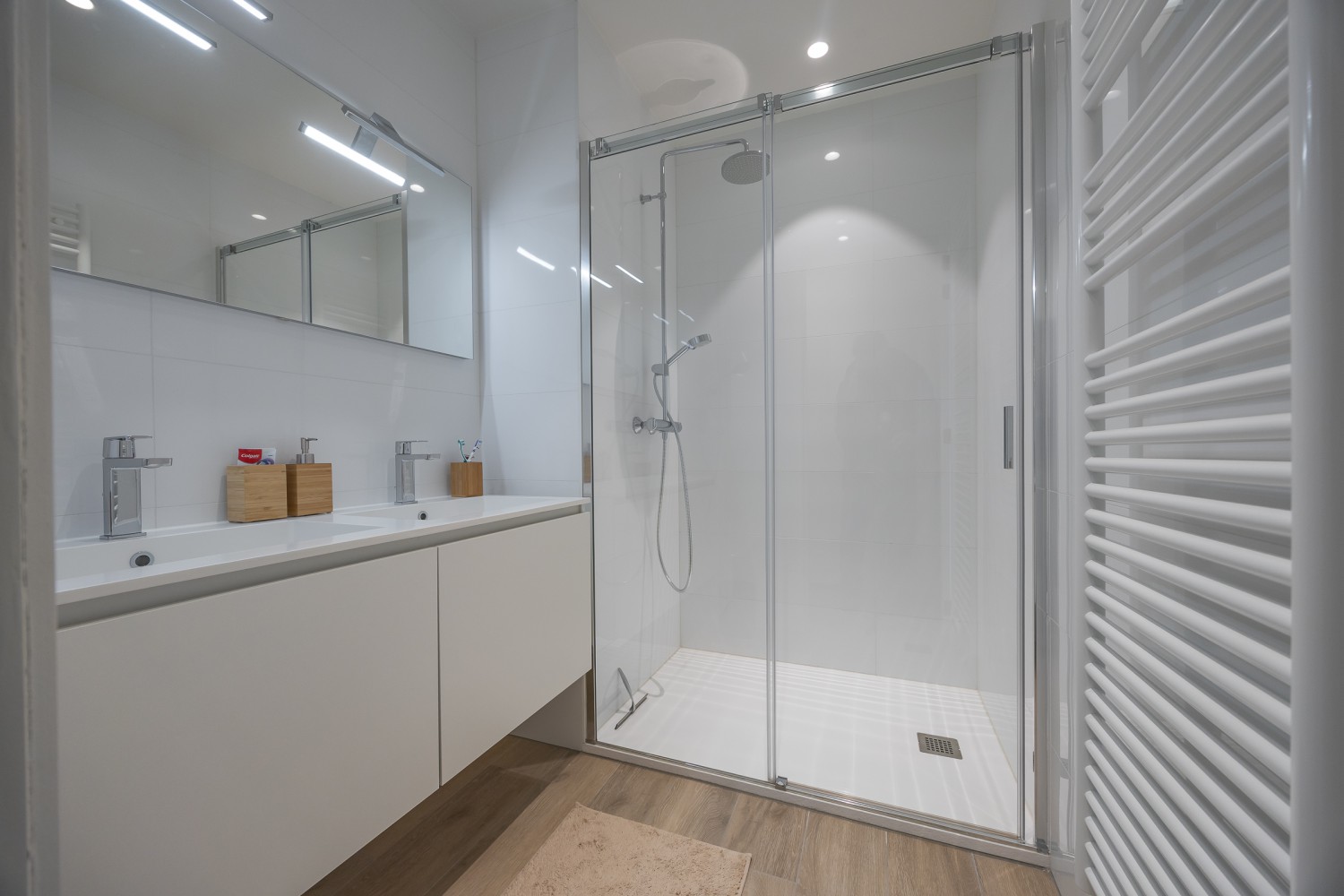 This beautiful newly built apartment on the 1st floor is the perfect place for an unforgettable seaside holiday. The apartment features 2 full-sized bedrooms: one with a wonderfully comfortable double bed and one with a practical bunk bed (double bed + single bed), ideal for families or friends travelling together.