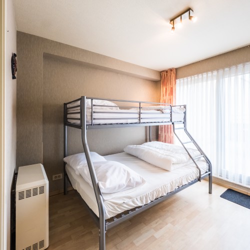 This spacious apartment on the 1st floor is perfect for a pleasant seaside stay. It features two bedrooms – one with a double bed and one with a bunk bed for three people – ideal for families or groups of friends.