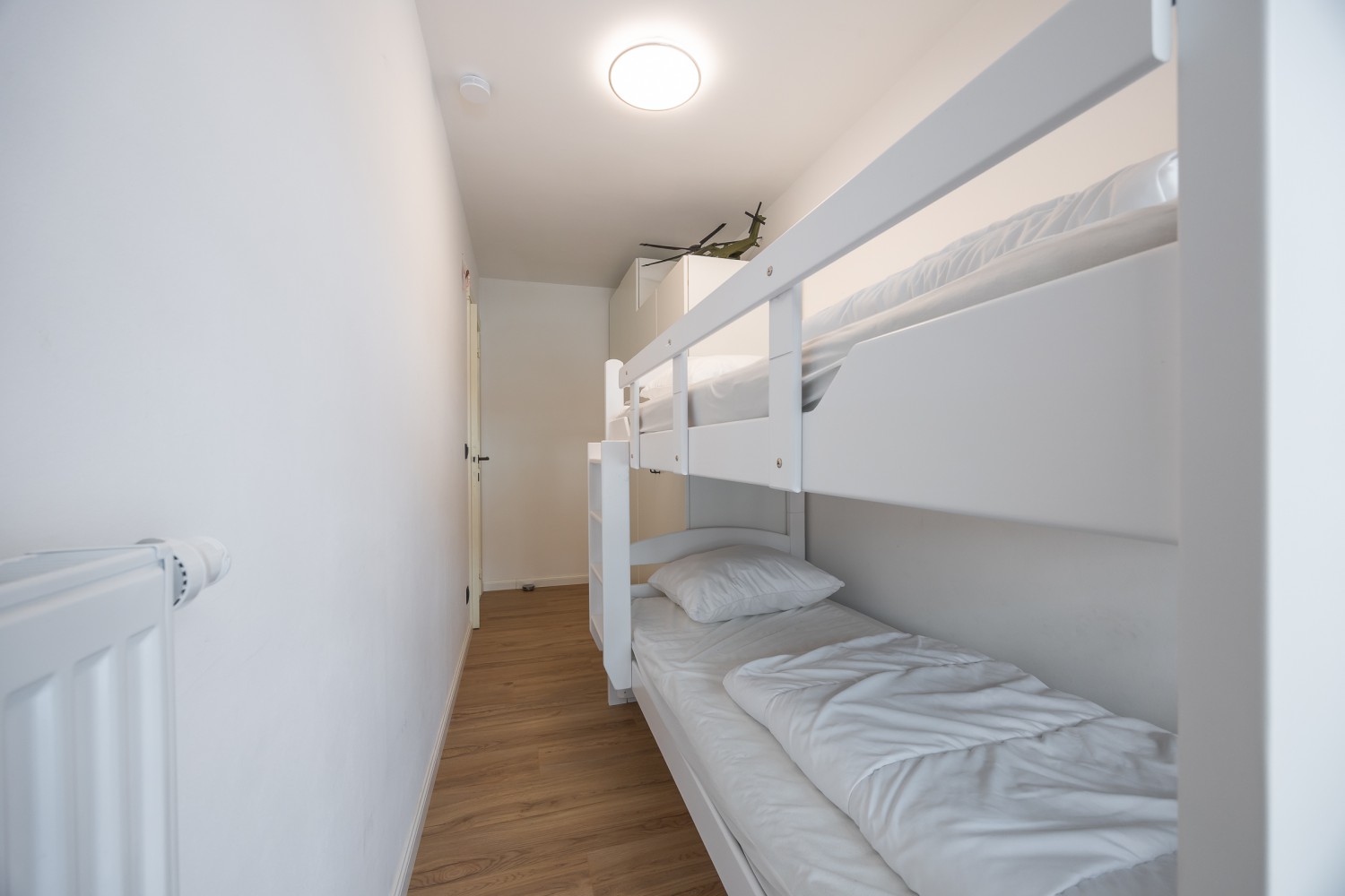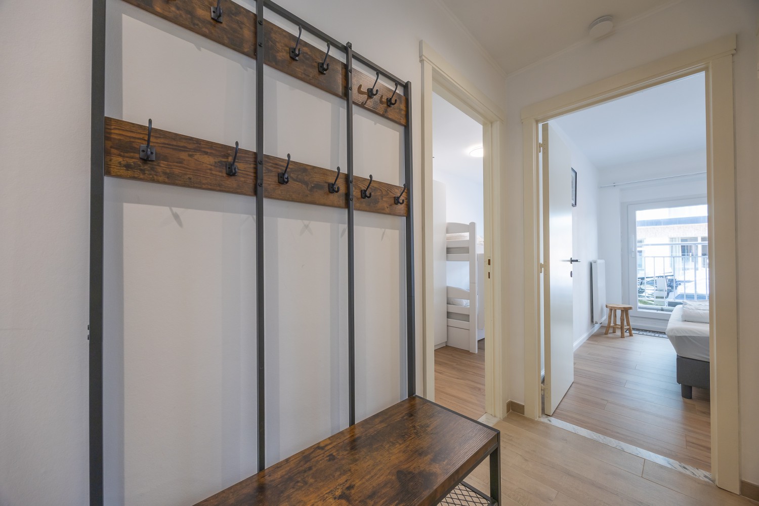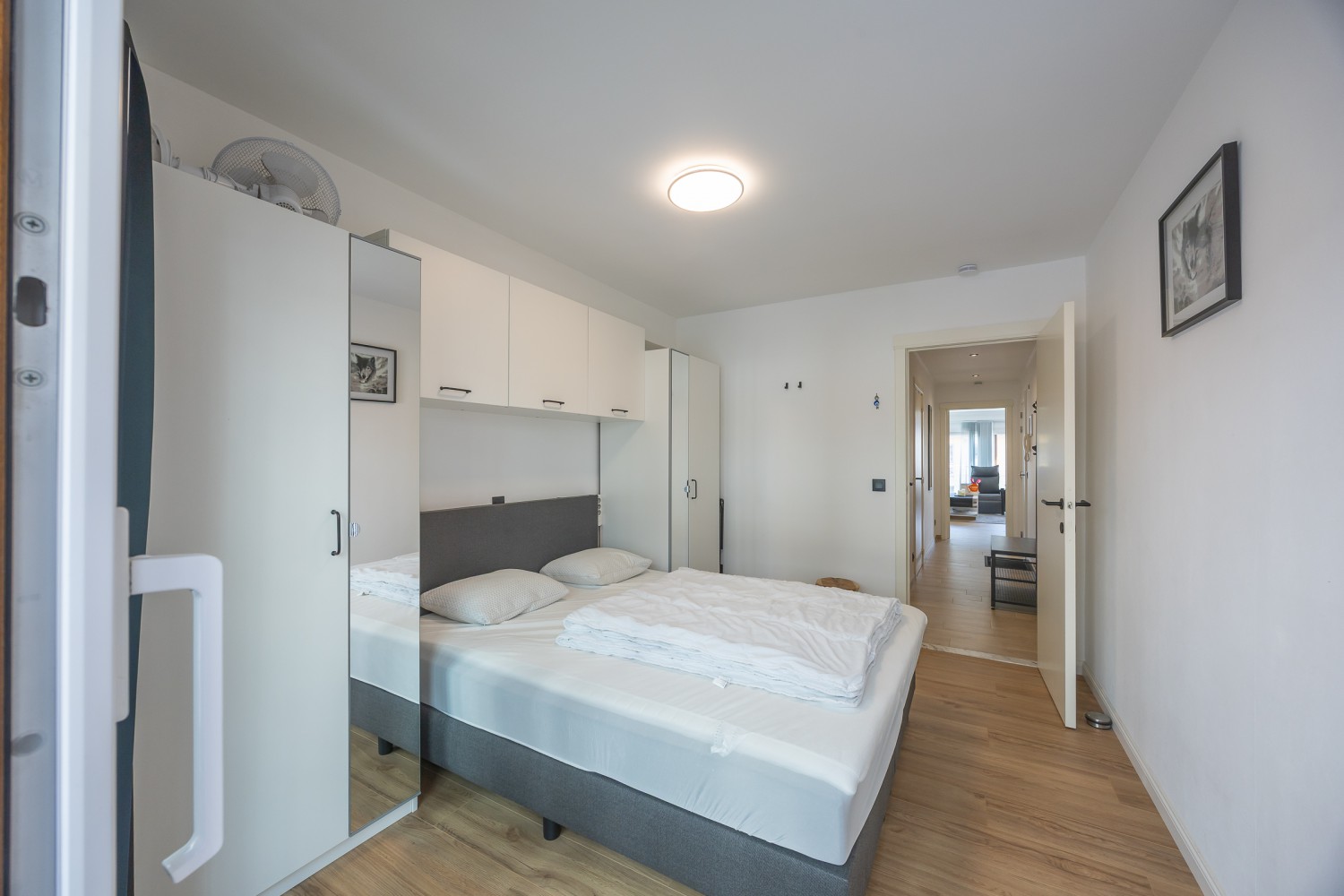 L’appartement dispose de 2 chambres complètes : une avec un lit double confortable et une avec un lit superposé. Dans le séjour se trouve également un canapé-lit pratique pour 2 personnes, permettant d’accueillir 6 personnes confortablement.