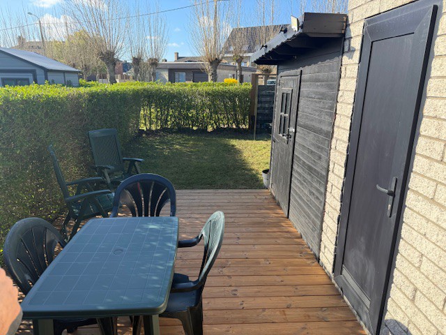Le séjour lumineux comprend un canapé-lit pour deux personnes ainsi qu’une cuisine ouverte entièrement équipée avec tous les appareils nécessaires. Depuis le séjour, vous accédez directement à la terrasse ensoleillée et au jardin entièrement clôturé, parfaits pour profiter du calme et de l’intimité.