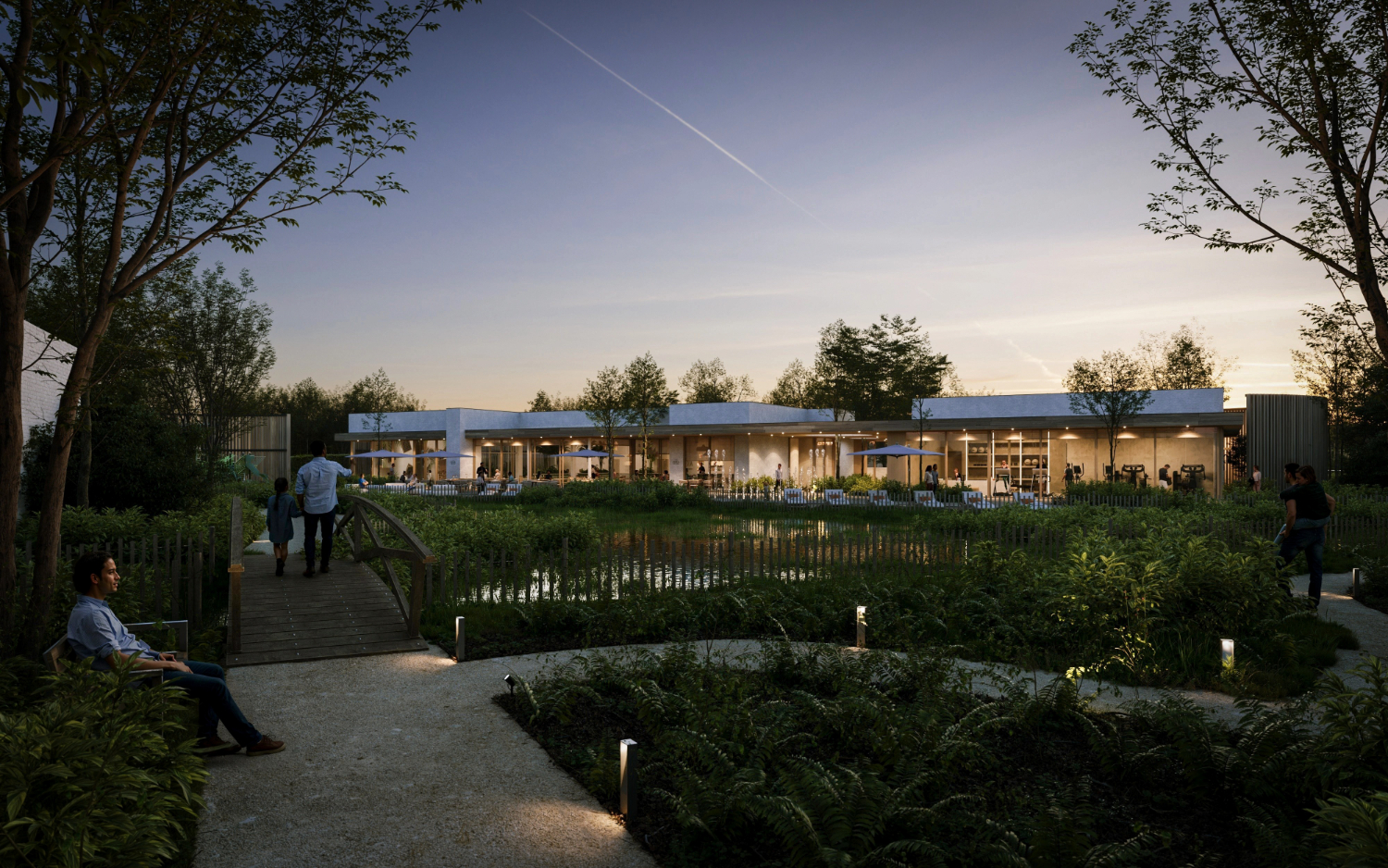 Nieuwbouwproject met vakantiewoningen en appartementen in een groene omgeving.