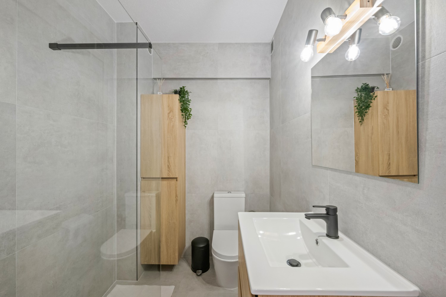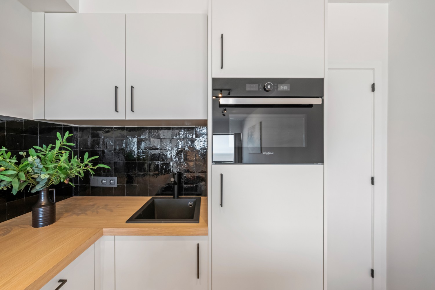 De keuken is volledig ingericht en de badkamer heeft een douche. Alles is aanwezig voor een zorgeloos en ontspannen verblijf aan de kust.