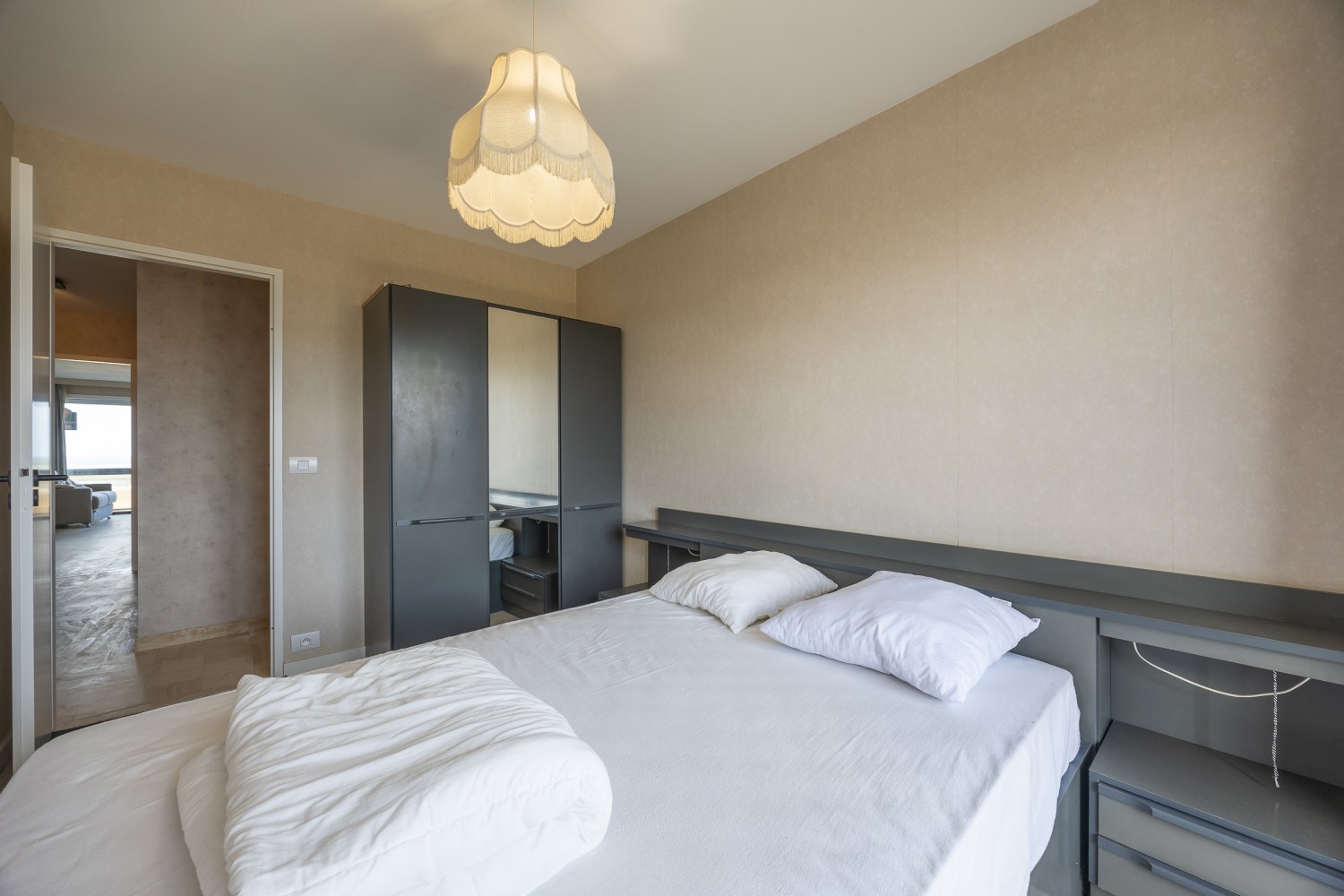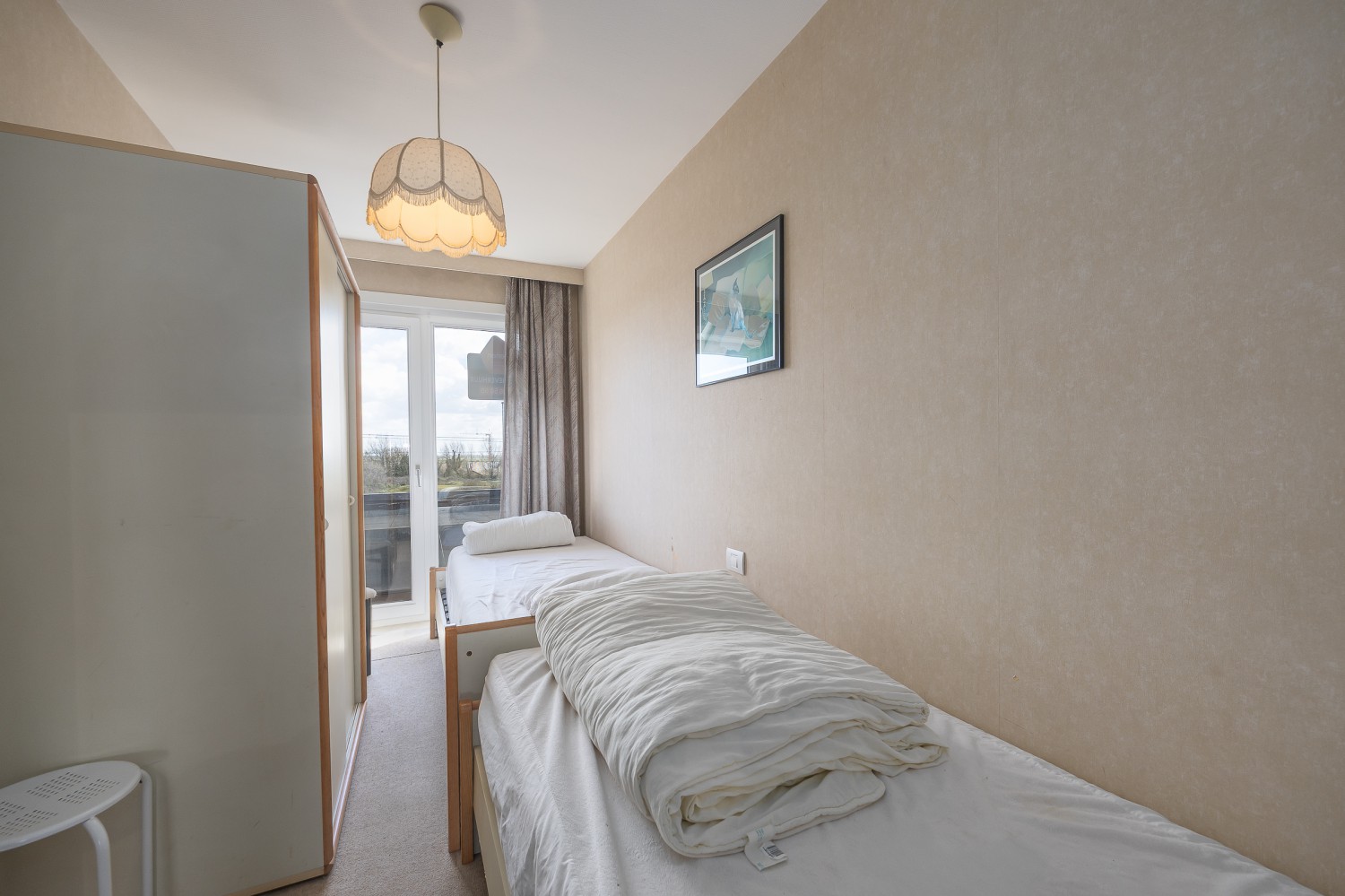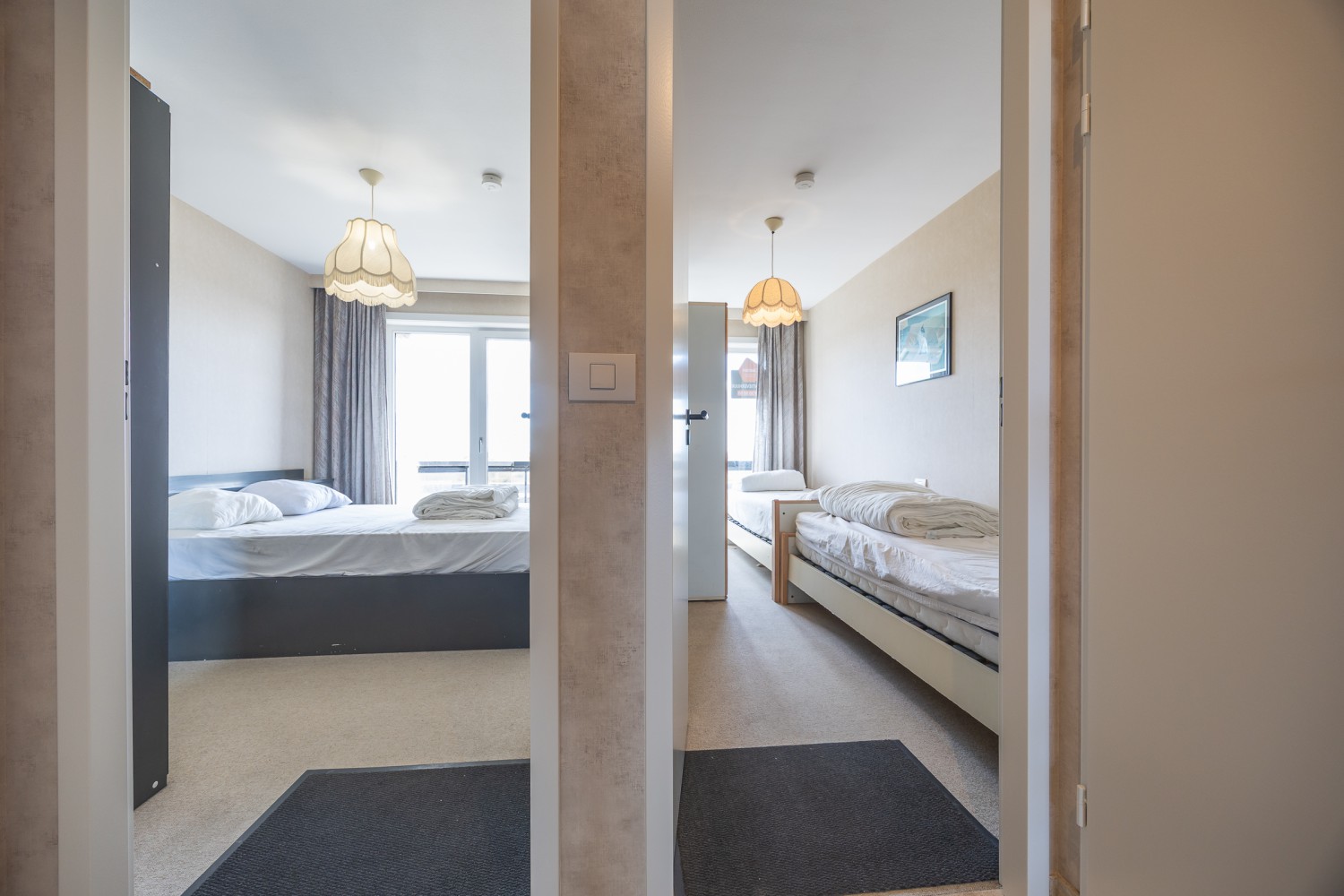 Het appartement beschikt over 2 slaapkamers: één met een dubbel bed en één met 2 enkele bedden, wat het perfect maakt voor gezinnen of een verblijf met vrienden.