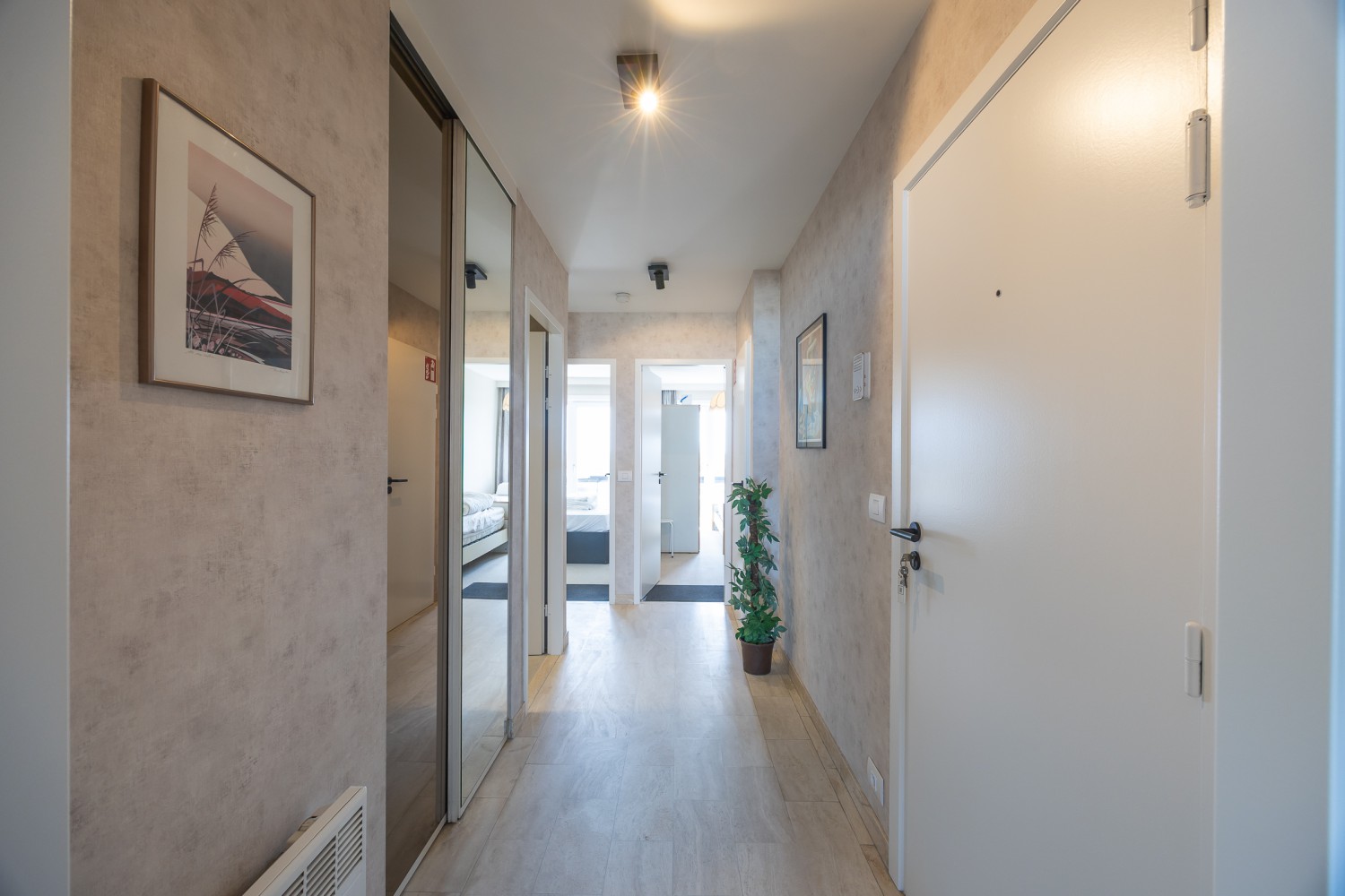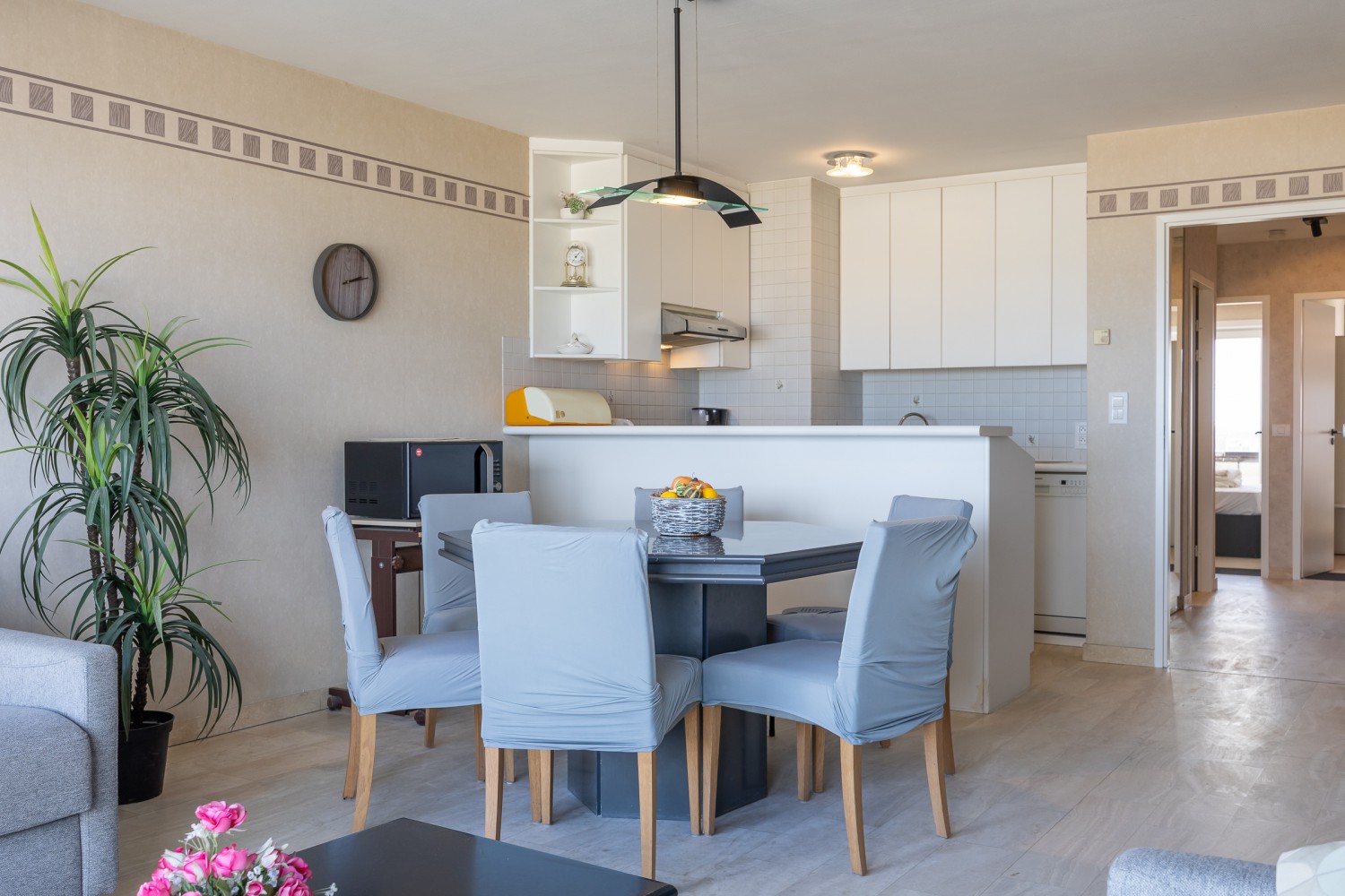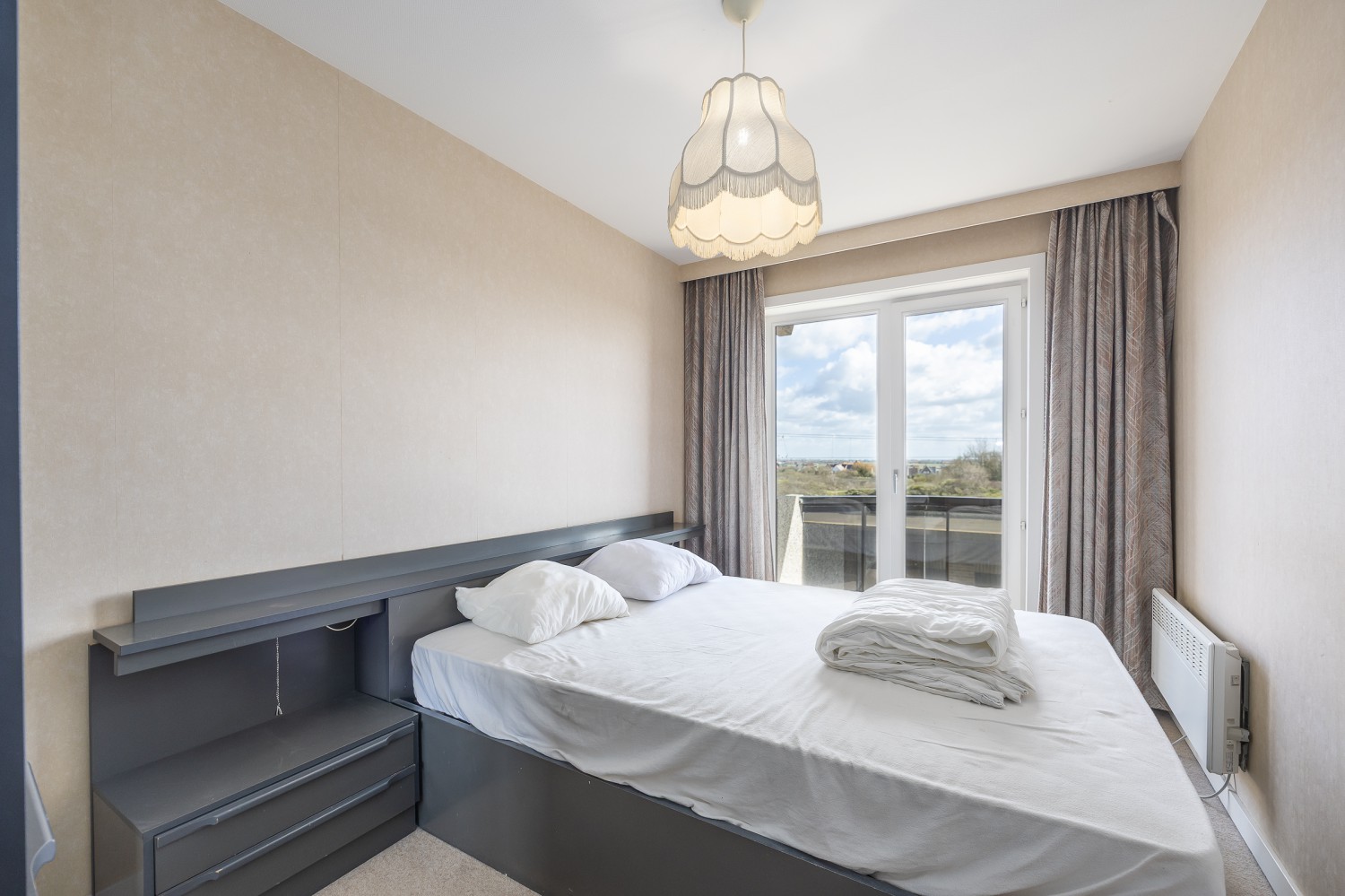 Het appartement beschikt over 2 slaapkamers: één met een dubbel bed en één met 2 enkele bedden, wat het perfect maakt voor gezinnen of een verblijf met vrienden.