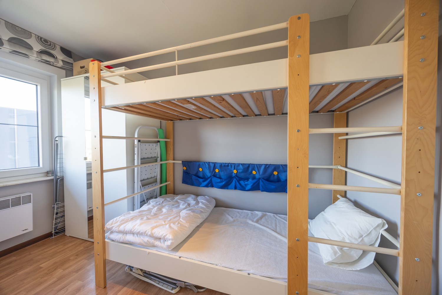 Dit aangename appartement op de tweede verdieping is ideaal voor gezinnen of kleine groepen. Het beschikt over één slaapkamer met een dubbel bed en één slaapkamer met een stapelbed en een eenpersoonsbed, wat zorgt voor een comfortabele en praktische indeling.