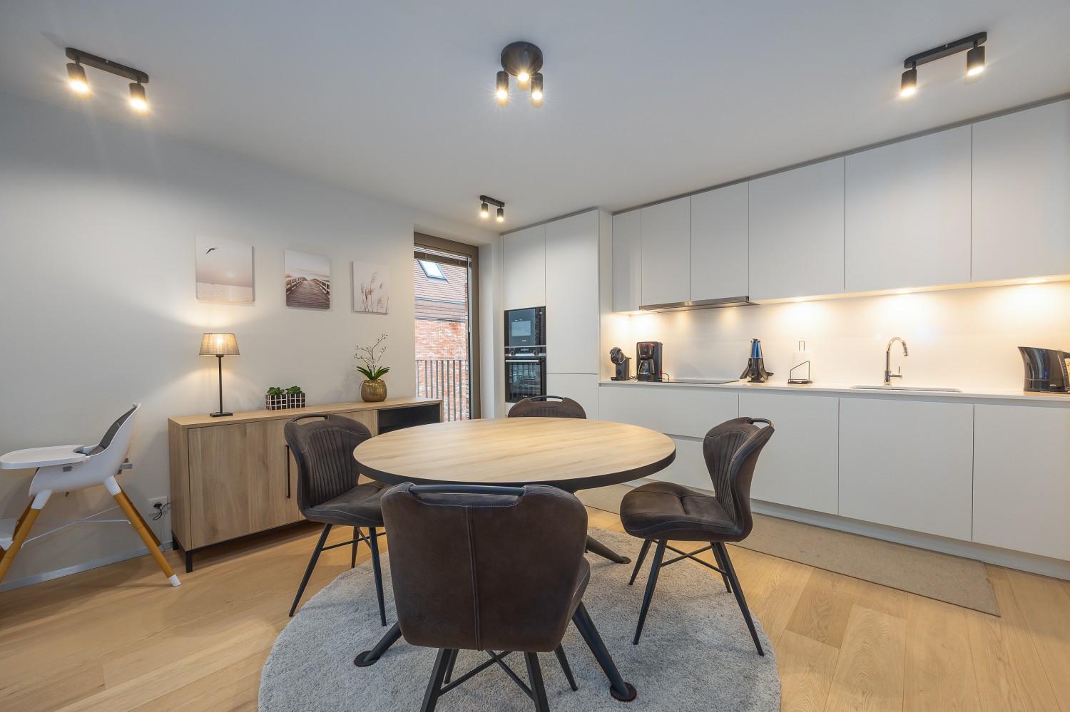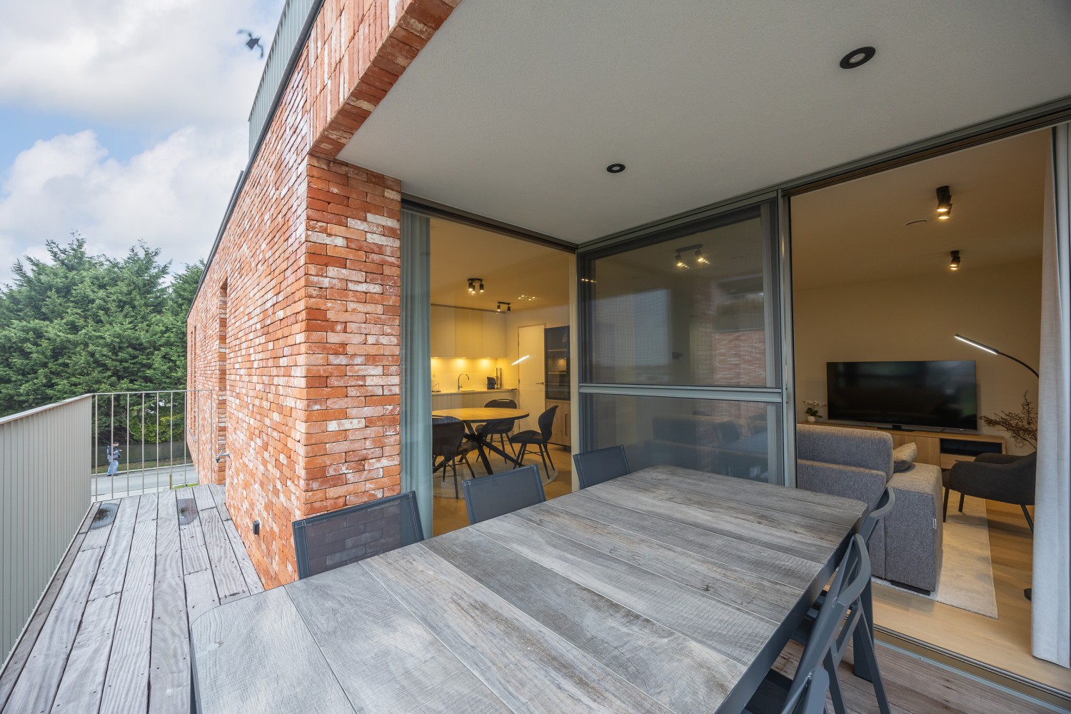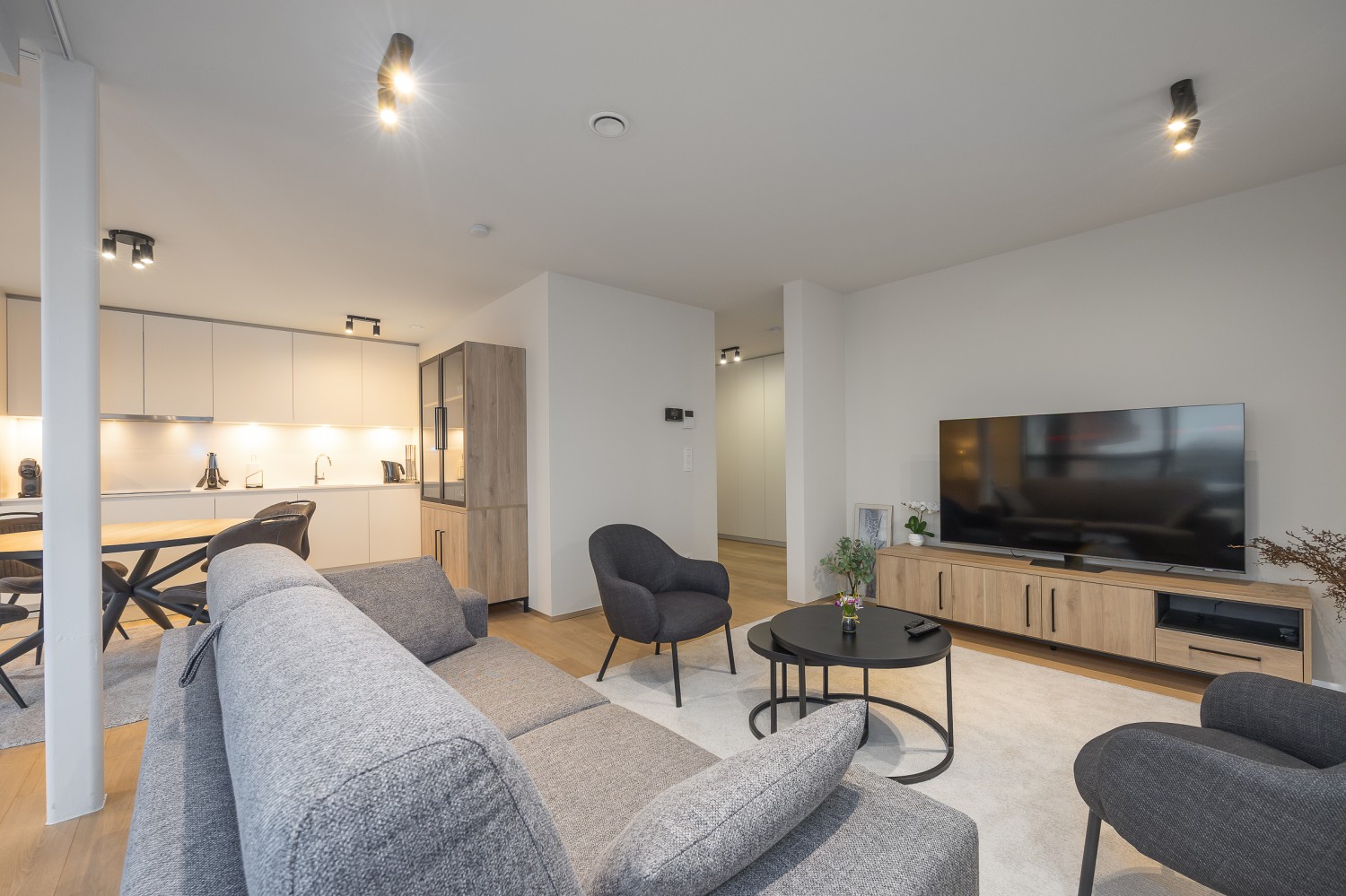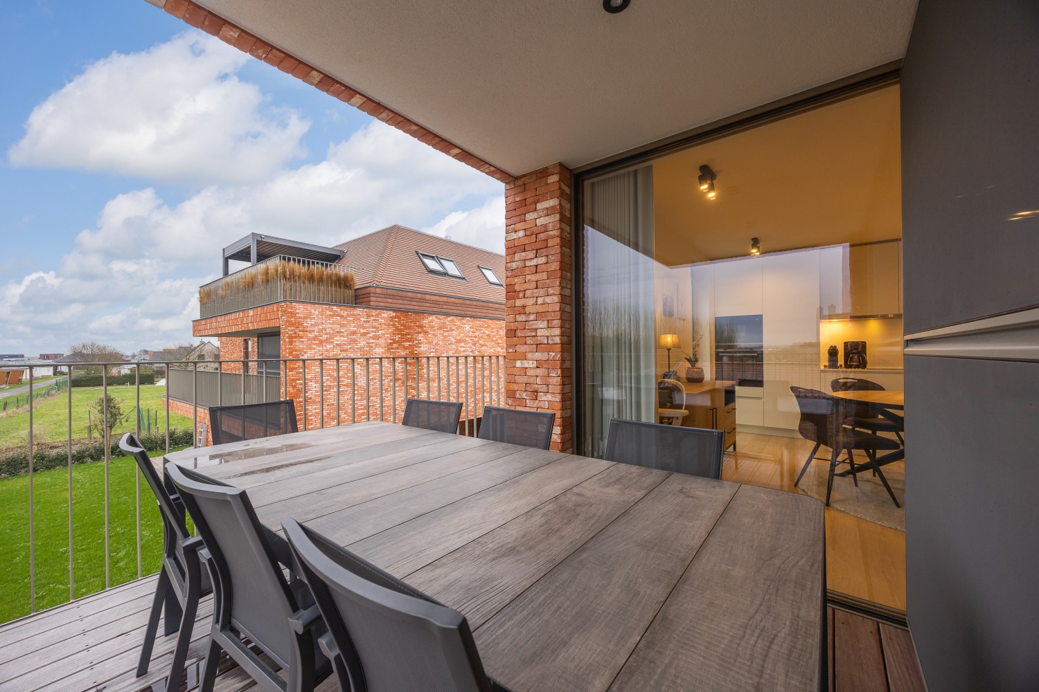 De stijlvolle en lichtrijke woonkamer baadt in natuurlijk daglicht dankzij de kamerhoge ramen en geeft rechtstreeks toegang tot het ruime, zonnige terras van maar liefst 14 m². Hier geniet u in alle rust van een ontbijt in de ochtendzon of een sfeervol aperitief bij zonsondergang. De open, volledig uitgeruste keuken sluit naadloos aan op de leefruimte en nodigt uit tot samen koken en gezellig tafelen.