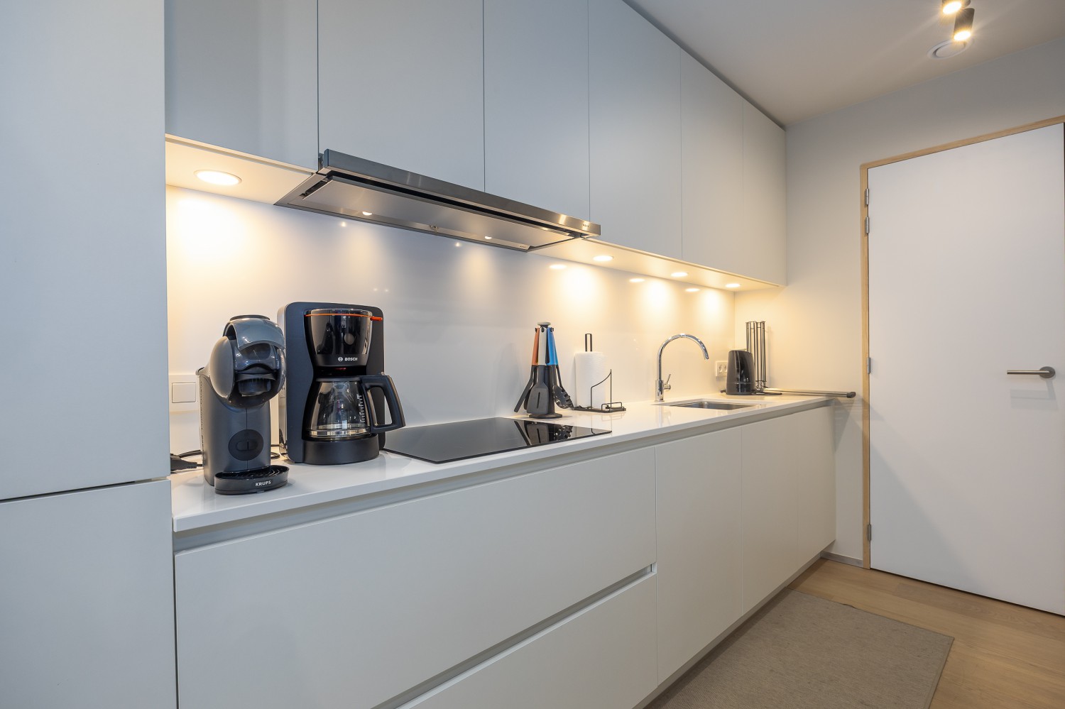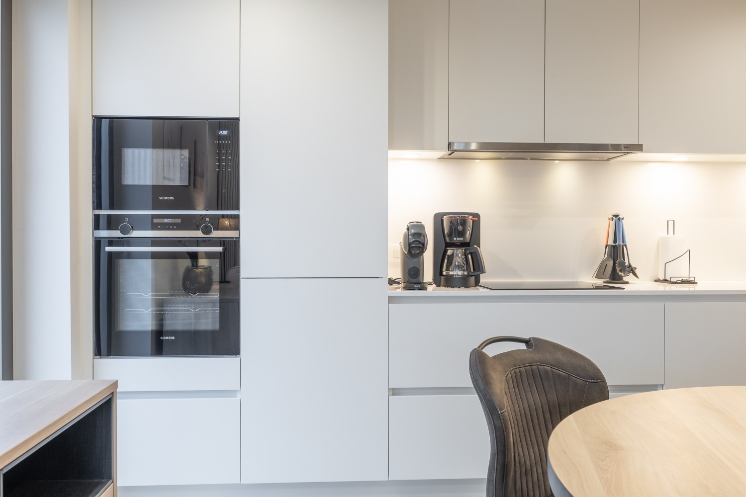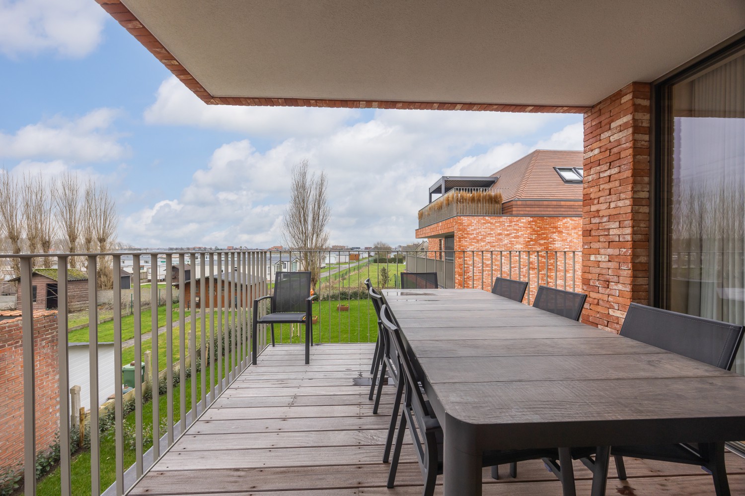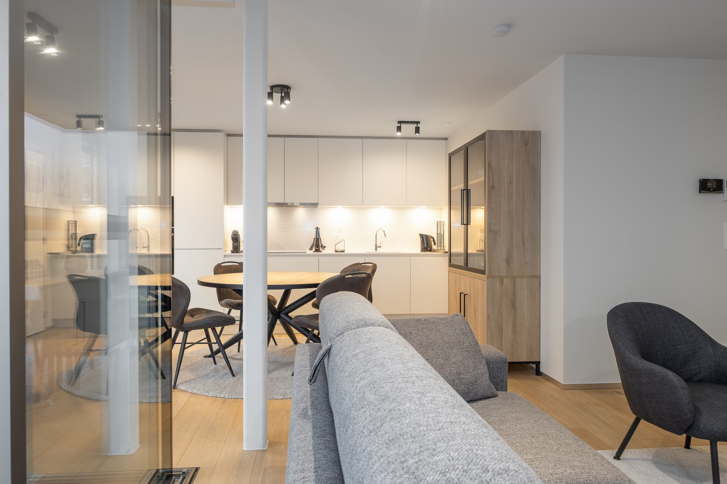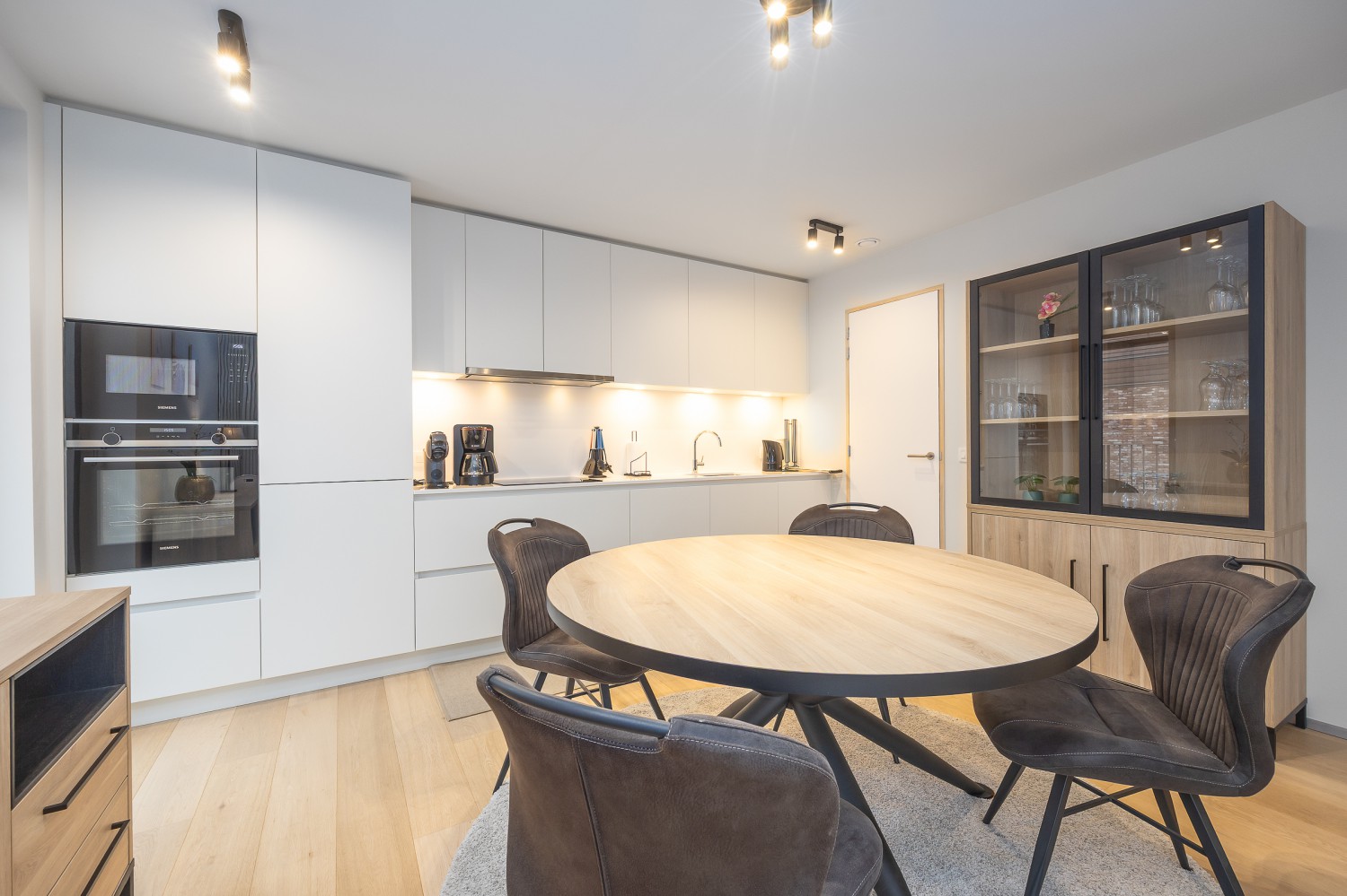 De stijlvolle en lichtrijke woonkamer baadt in natuurlijk daglicht dankzij de kamerhoge ramen en geeft rechtstreeks toegang tot het ruime, zonnige terras van maar liefst 14 m². Hier geniet u in alle rust van een ontbijt in de ochtendzon of een sfeervol aperitief bij zonsondergang. De open, volledig uitgeruste keuken sluit naadloos aan op de leefruimte en nodigt uit tot samen koken en gezellig tafelen.